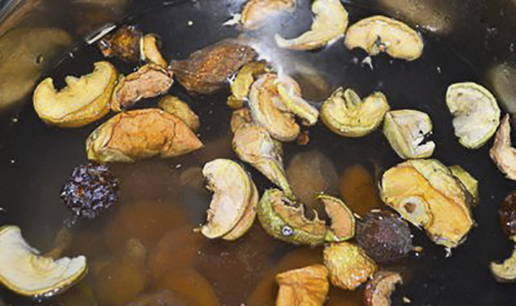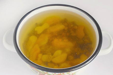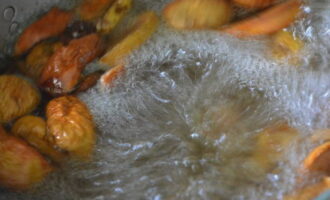 - Bedek het gedroogde fruit met water en zet de pan op het vuur. breng de compote aan de kook.