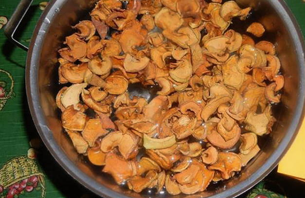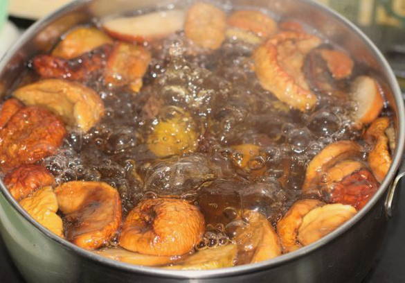 - Giet water uit gedroogd fruit, doe het in een pan, dek af met water en steek het in brand.