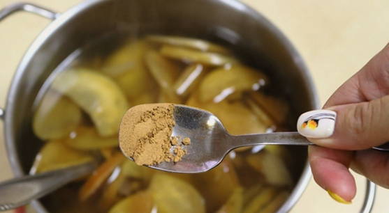 - Voeg honing toe aan de nog warme compote en meng de drank goed.