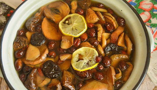 Gedroogde fruitcompote lest niet alleen de dorst, maar vult ook met vitamines en energie. Als u deze drank buiten het seizoen regelmatig drinkt, versterkt u uw immuunsysteem. In plaats van suiker kan er natuurlijke honing aan de compote worden toegevoegd.