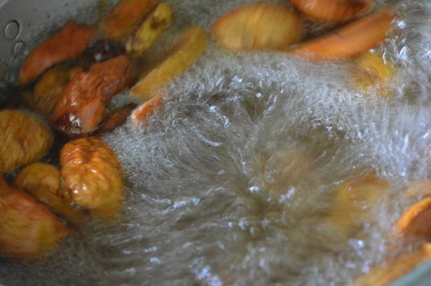- Breng gedroogd fruit over in een pan en bedek met water.