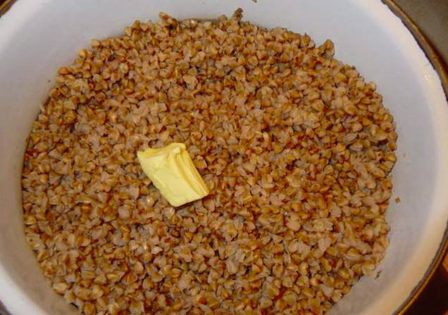 - Voeg dan de boter toe, roer en laat de pap nog 5 minuten onder het deksel staan. Heerlijke en kruimelige boekweitpap is klaar.