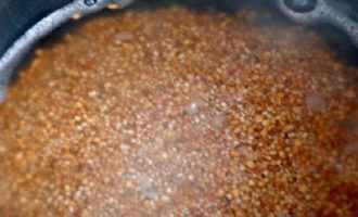 - Maak eerst de granen klaar om te koken. Het moet zorgvuldig worden uitgezocht en vervolgens in een kom met water worden gespoeld, waarbij het water meerdere keren wordt ververst. U kunt dus kaf en verschillende kleine rommel van granen verwijderen, zodat alleen al het nuttige en noodzakelijke overblijft.