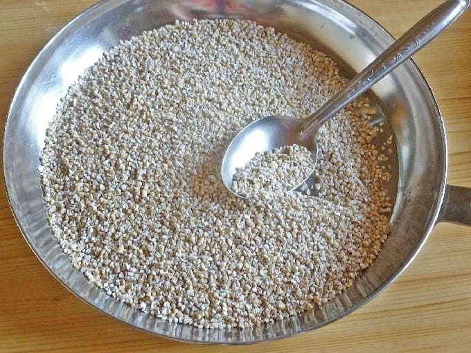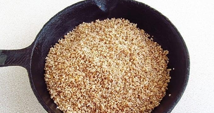 - Vervolgens moet je een koekenpan met een dikke bodem verwarmen en daar gerstekorrels naartoe sturen zodat deze van alle kanten wordt gecalcineerd. Dit moet snel en zeer zorgvuldig gebeuren.