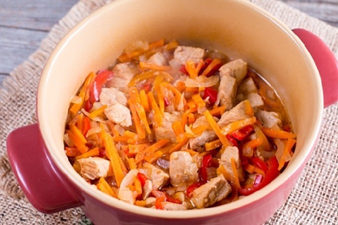 - Indien gewenst kunt u andere groenten aan het vlees toevoegen, bijvoorbeeld paprika of tomaten. Snijd groenten op dezelfde manier als uien en wortels.