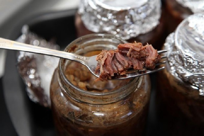 - Voeg vervolgens twee glazen water toe aan de container met vlees, dek de container af met een deksel en laat het vlees een half uur op laag vuur sudderen.