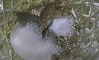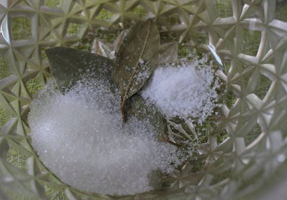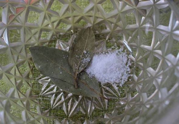 Doe laurier in een kom, voeg een theelepel zout toe.