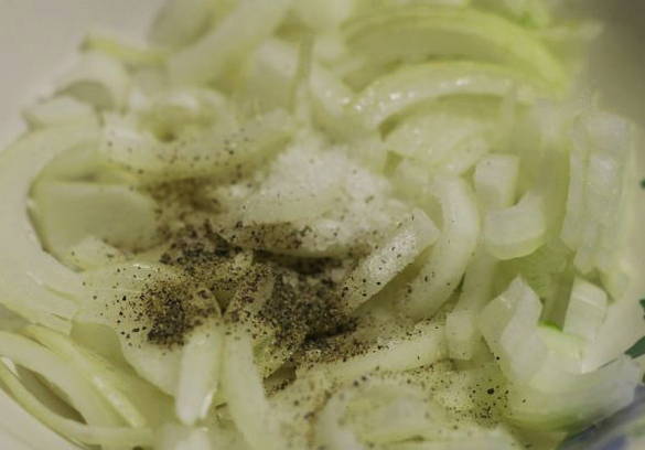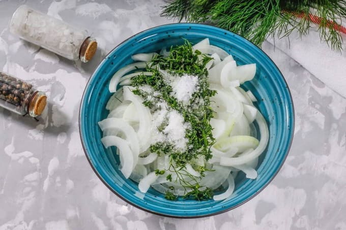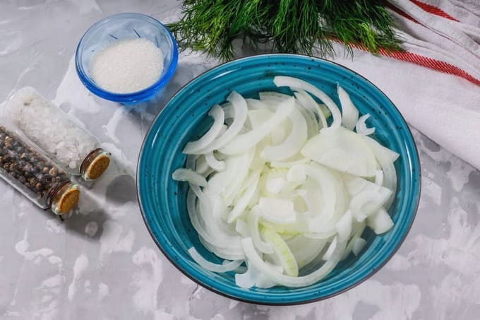 - Doe de ui in een kom, peper naar smaak en laat nog een paar minuten staan. met zulke ingelegde uien wordt de haring veel lekkerder.
