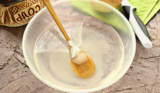 - Meng in een diepe kom water, azijn, zout en suiker.