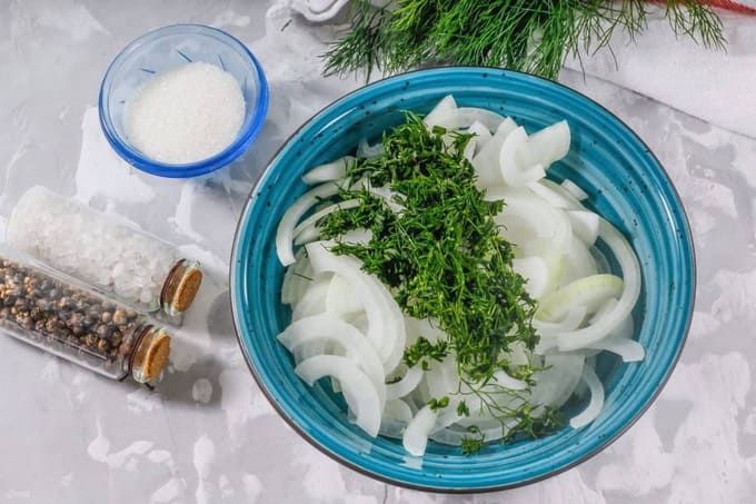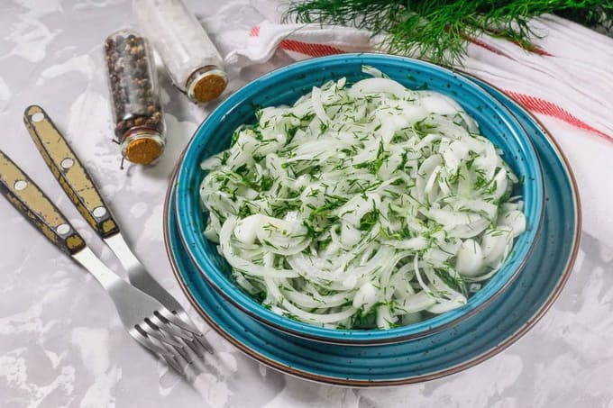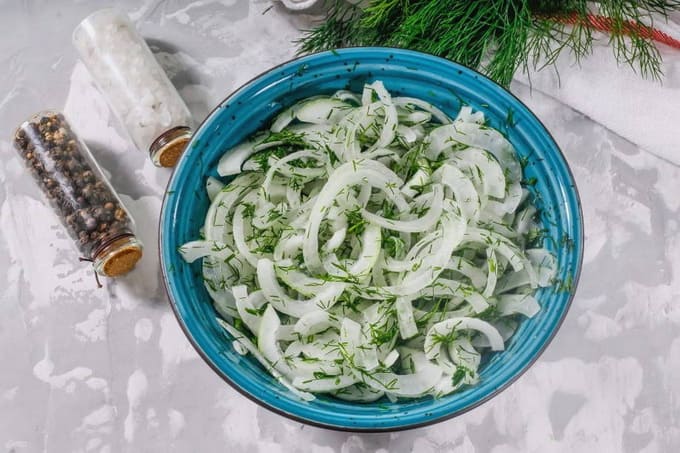 - Aromatische ingelegde uien met azijn en dille