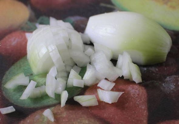 - Pel de ui en snij in kleine blokjes.
