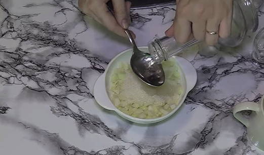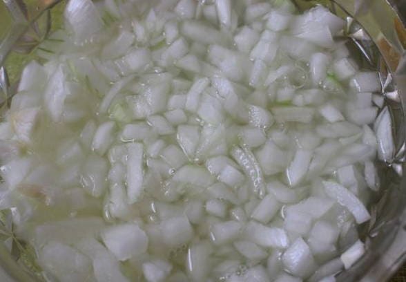 - Doe de gesnipperde ui in een pot of kom.