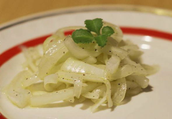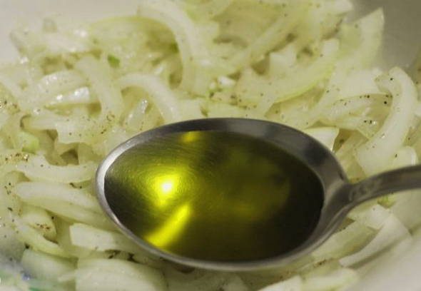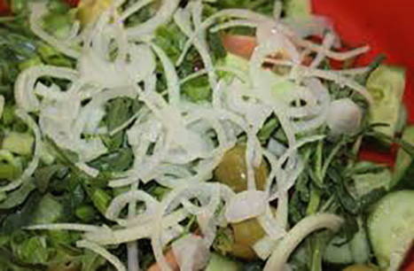 - De uien zijn klaar om aan de salade te worden toegevoegd.
