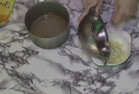 - Na ongeveer een uur zijn de uien in goede staat. Gooi het in een vergiet en laat de marinade uitlekken.