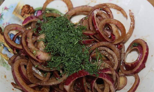 - Na een half uur kunnen ingelegde uien met dille worden geserveerd.