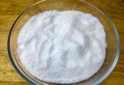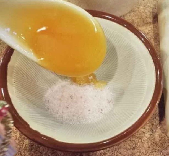 - Nu nemen we een diepe container en combineren er zout en suiker in.