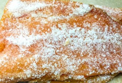 - Wrijf tenslotte de vis in met zout en suiker.