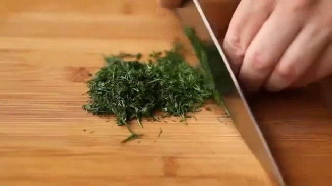 - We wassen de dille en hakken deze fijn met een mes.
