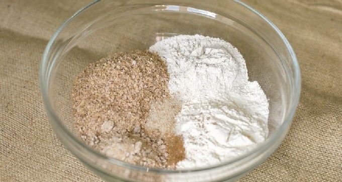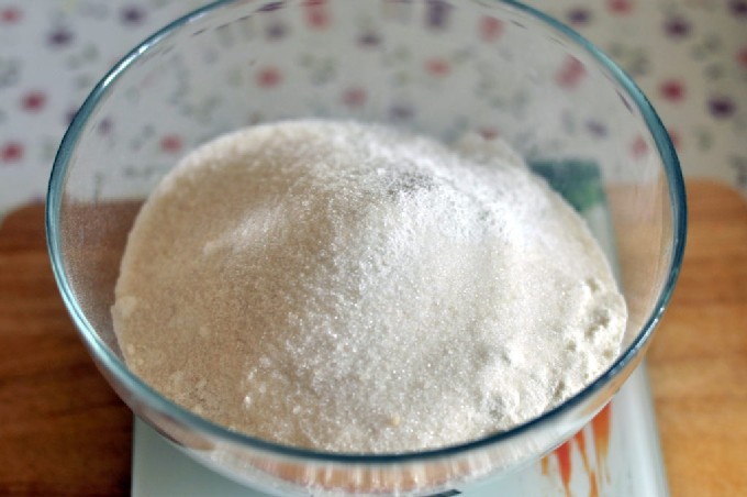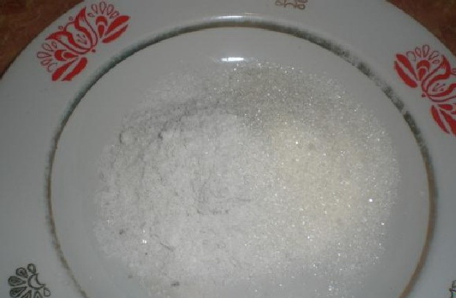 Laten we een mengsel bereiden om te zouten. Neem hiervoor een diepe kom en meng er suiker en zout in. Het is absoluut noodzakelijk dat de verhouding 2: 1 is.