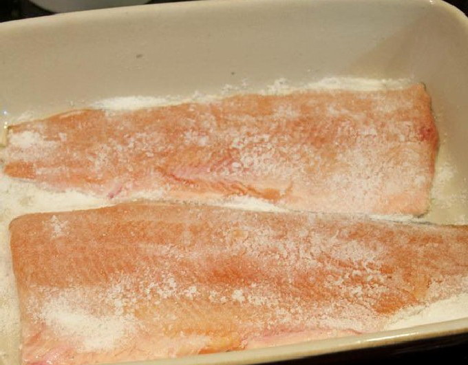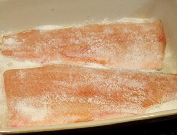 - Bereide forelfilet, ontdaan van botten en ingewanden, moet worden afgespoeld en gedroogd.