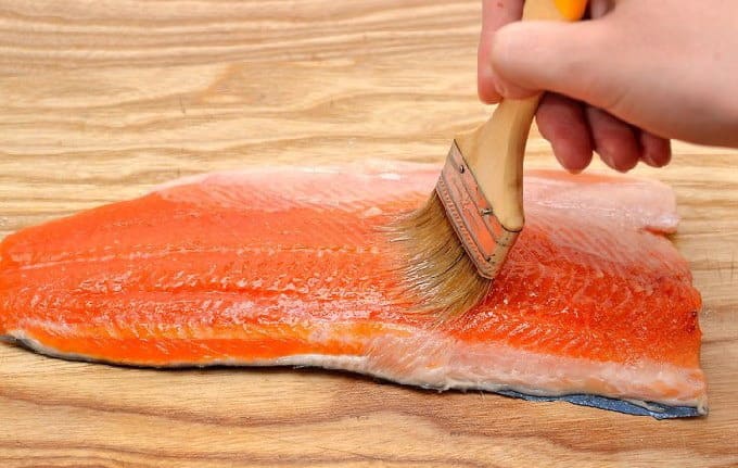 - Smeer de forel aan beide kanten in met het voorbereide mengsel.