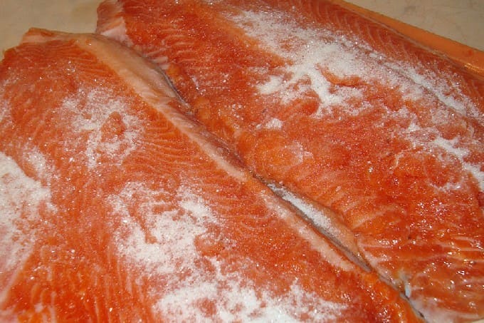 Hoe forel thuis te zouten met zout en suiker?
