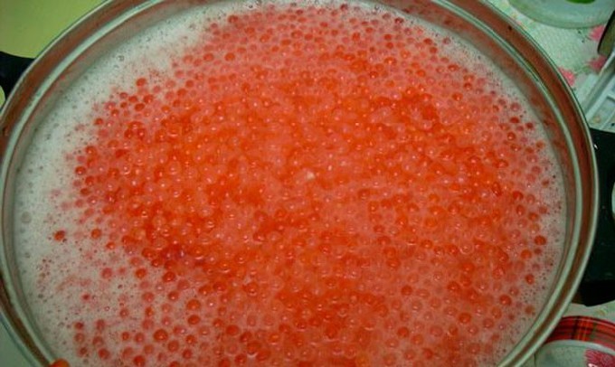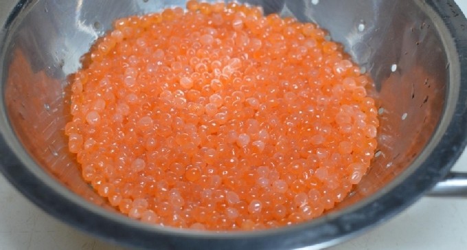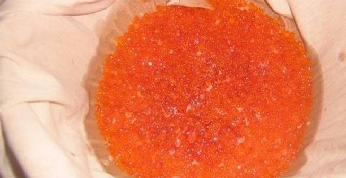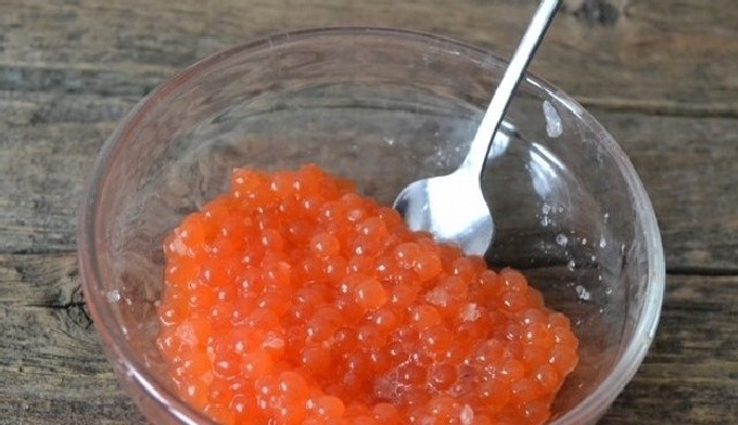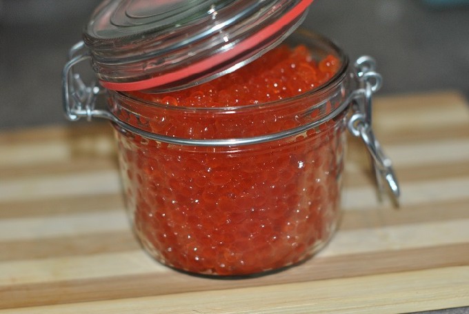 In suikerpekel krijg je zoetere zelfgemaakte forelkaviaar dan in de gebruikelijke klassieke, waar zout precies twee keer zoveel wordt toegevoegd als suiker. Dit product is goed omdat je zelfstandig een heerlijke visdelicatesse kunt maken zonder angst voor de kwaliteit, wat niet altijd het geval is met producten uit de winkel.