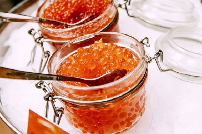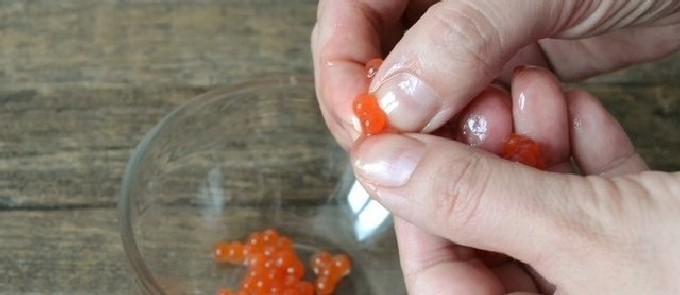 - Plaats de kaviaar in schone kleine glazen potten onder het deksel in de koelkast om te zouten. Eet zelfgemaakte forelkaviaar in 1-2 dagen.