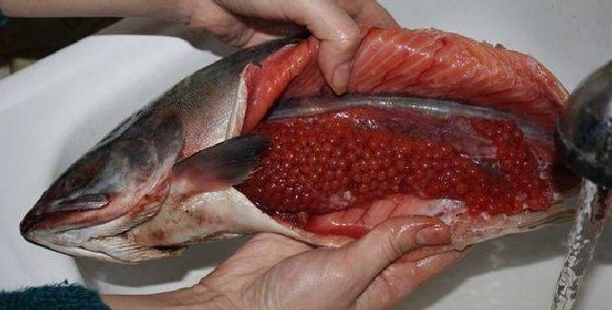 - Was de vis en open vervolgens voorzichtig zijn buik om de kaviaaropslag - yastiki - niet te beschadigen. Als uw forel bevroren is, moet u deze eerst ontdooien.