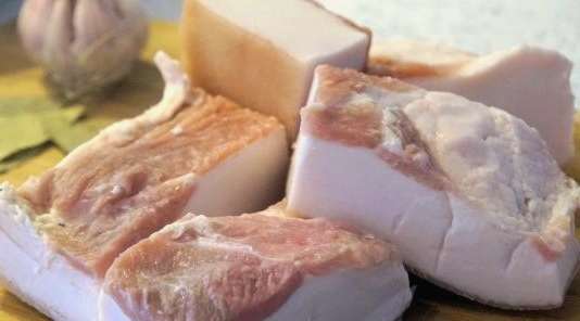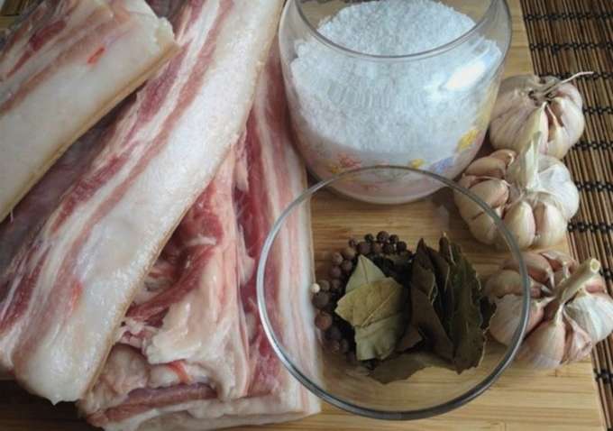 Door het zelfgemaakte spek volgens het originele damesrecept te zouten, krijgt u een delicaat en matig gekruid product. Geniet van een eenvoudig optreden van een heerlijke snack voor het hele gezin.