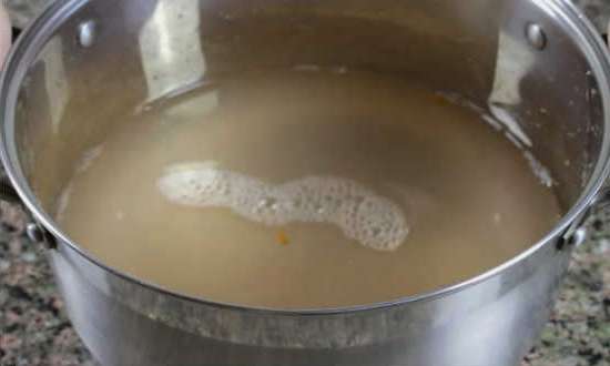 - Verwijder de schil van de schone uien en stuur deze samen met zout en peper naar het reeds kokende water. Roer en kook de inhoud gedurende 15 minuten.