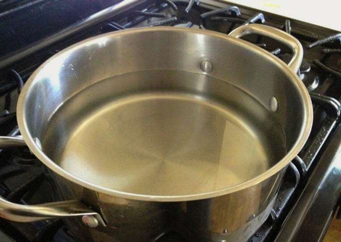 - Giet water in een grote pan, in brand gestoken.