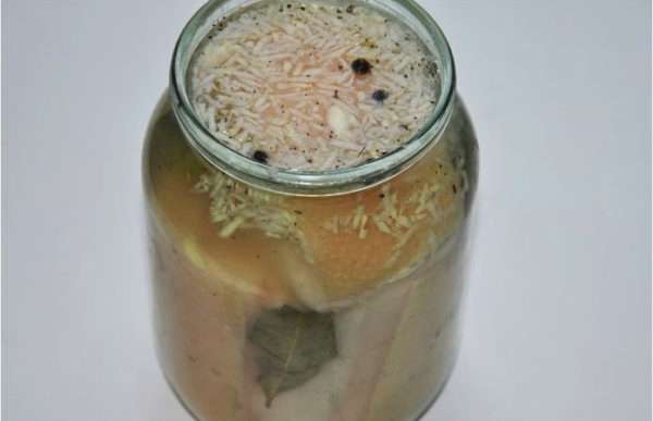 - Zachte reuzel in pekel met kruiden in een pot van 3 liter
