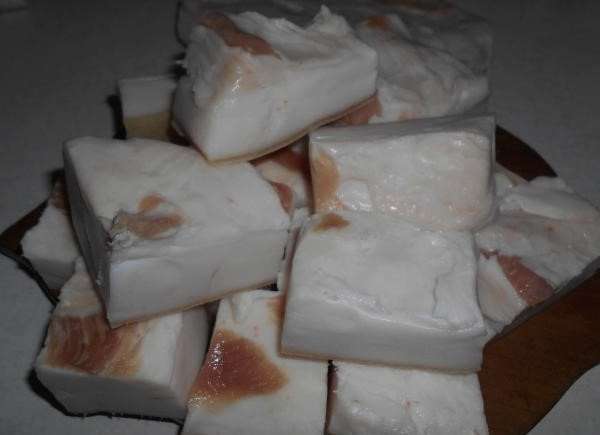 - Kies een geschikt stuk reuzel en verdeel het in kleine stukjes.