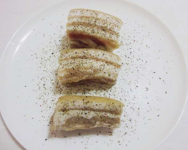 - We halen het afgewerkte spek uit de pekel, snijden en serveren. Eet smakelijk!
