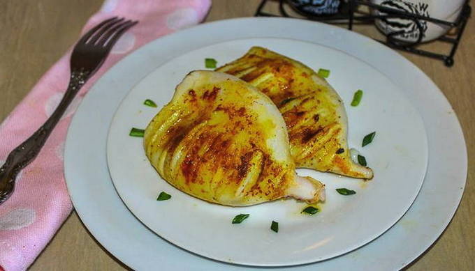 De belangrijkste regel van koken is goed braden. Inktvis moet op hoog vuur worden gebakken, maar niet te lang. Bij overbelichting wordt het product taai, rubberachtig en smaakloos. Genoeg 4-5 minuten aan elke kant, maar de hitte moet sterk zijn. Gegrilde inktvis wordt in een salade gedaan of zomaar gegeten.