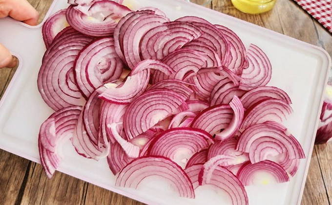 - Snijd de ui in halve ringen.