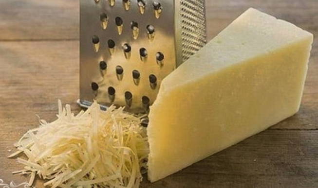 - Rasp kaas op een grove rasp.