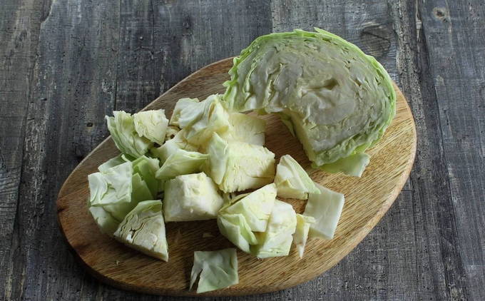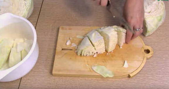 - Snijd de kool in grote blokjes en demonteer vervolgens in afzonderlijke vellen.