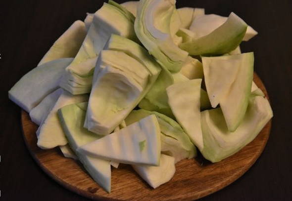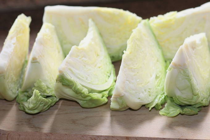 - Was de kool en snijd de kop in meerdere grote plakken.