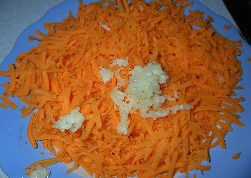 - Schil de wortelen en knoflook. Rasp de wortels, haal de knoflook door een pers.