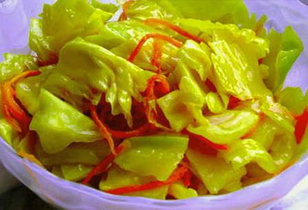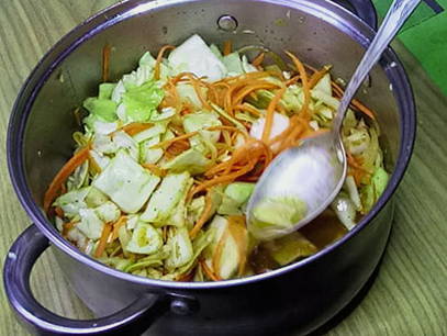 - Voeg vervolgens de inhoud van de pan toe aan de groenten, meng goed. over drie uur is de Koreaanse kool klaar om te eten