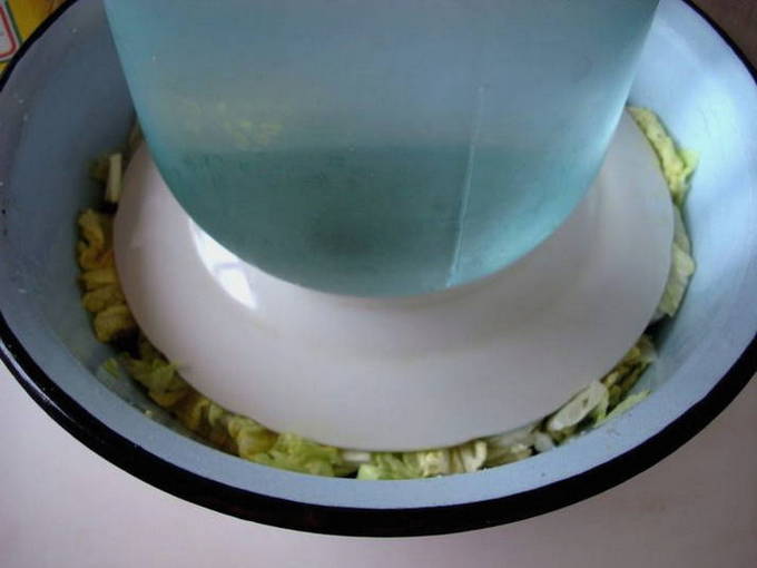 - Zet de onderdrukking op de groenten en laat ze een dag op kamertemperatuur staan. Bewaar daarna de afgewerkte Koreaanse koolsalade in de koelkast.