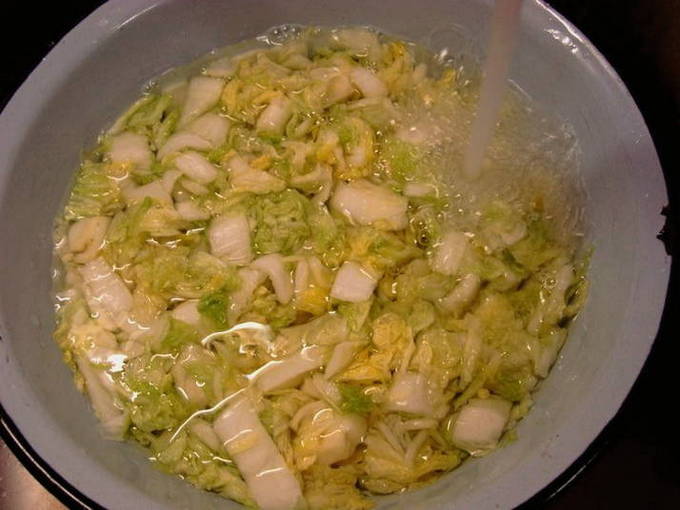 - Spoel de gezouten kool vervolgens af met stromend water.