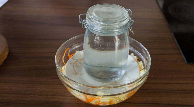 - Als het werkstuk is afgekoeld, sluit u de pot met een deksel en zet u deze een dag in de koelkast.