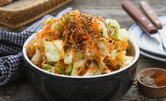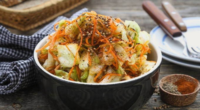 Een snelle en smakelijke snackoptie voor op tafel. Doe-het-zelf kool met wortel in het Koreaans blijkt veel lekkerder te zijn dan op de markt gekocht. Dit is een veelzijdige salade die goed past bij vlees- en visgerechten.