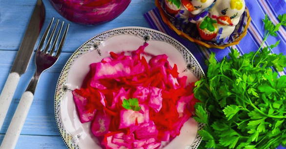 Een origineel pittig voorgerecht van kool en bieten in Koreaanse stijl. Het is eenvoudig en snel bereid, het verrast met zijn heldere uiterlijk en heerlijke smaak.