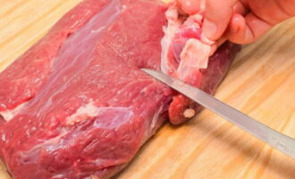 Voor het koken moet je het vlees voor de carpaccio heel verantwoord kiezen. Een verse ossenhaas is goed voor ons. Het moet zacht en zacht zijn. Als het mogelijk is, neem het dan van een vriend of een vertrouwde slager. Spoel het vlees grondig af en droog het af met keukenpapier.