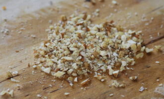 - We gebruiken hazelnoten en amandelen om de carpaccio te versieren. Hak de noten fijn met een mes. Het is noodzakelijk dat de stukjes klein zijn en het voorgerecht een aangename crunch geven. Snijd twee zongedroogde tomaten in kleine en dunne plakjes. Laten we beginnen met Parmezaanse kaas. Je kunt het in dunne reepjes snijden of op een fijne rasp raspen.