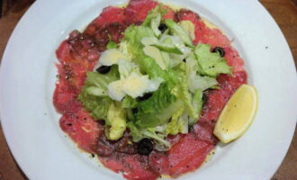Ontzettend lekkere rundercarpaccio met truffelolie